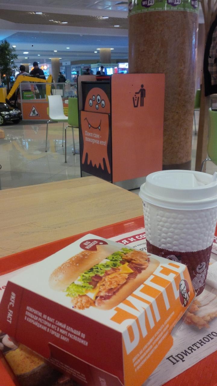 Обычный KFC, но ввиду того что пока в новинку дикие очереди. Еда понятно отвратительная)
